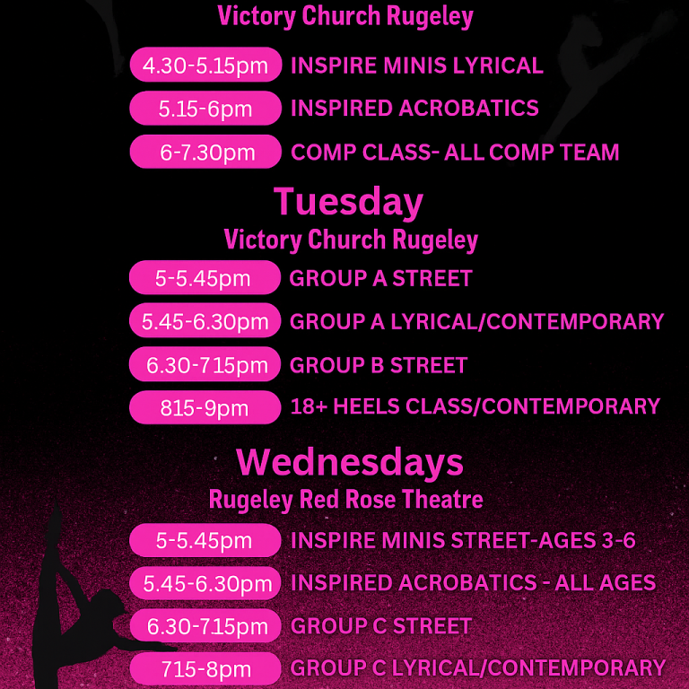 Every year we put on an annual showcase to show off the hardwork that the dancers have put in for that year, we pick a theme each year and perform at the Rugeley Rose Theatre!